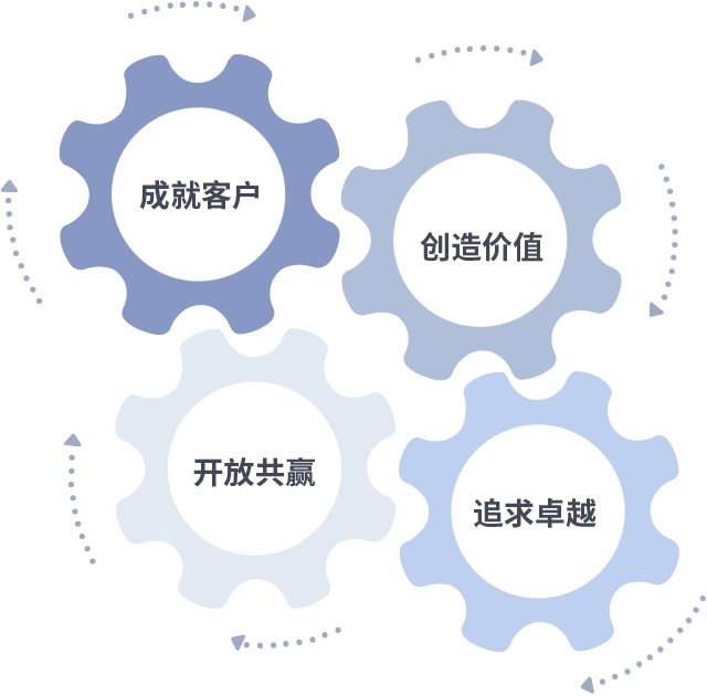 成就客户是一切决策的出发点,创造价值是衡量所有工作的标准,追求卓越是米兰·中国官方网做事做人的态度,开放共赢是米兰·中国官方网的格局也是最终的结果。价值观的齿轮环环相扣,推动着组织里的每个人不断向前。